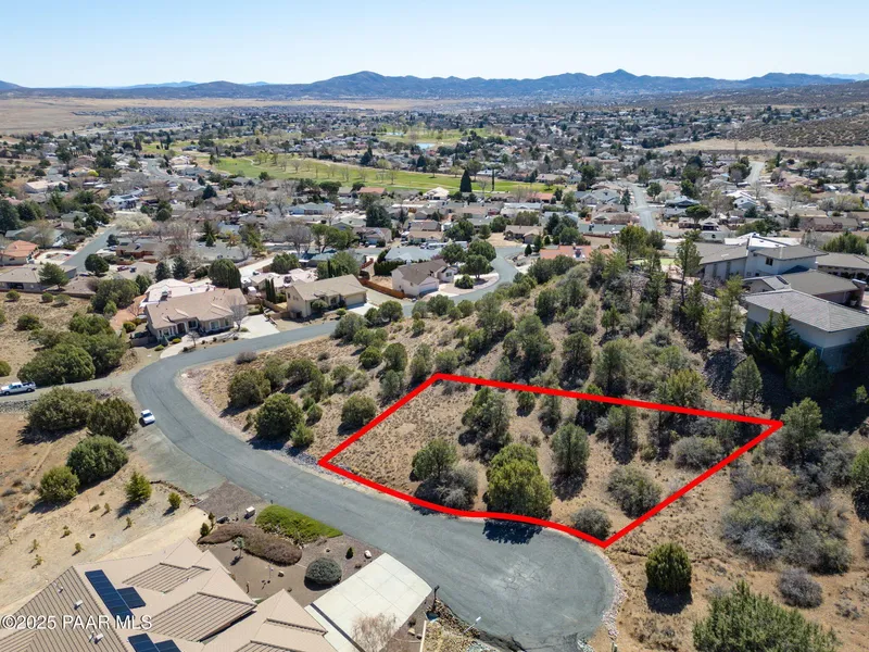 Beautiful lot with a mix of Pinon Pines & Scrub Oak trees. This is a wonderful building lot with views overlooking the Prescott Country Club area, Mingus Mountains & Valley. The lot is located on a cul-de-sac street with custom homes around it. The lot offers wonderful possibilities for those looking to build their dream home. Building permits will be applied for through Prescott Valley & the lot will require a septic system which will be applied for through Yavapai County.
