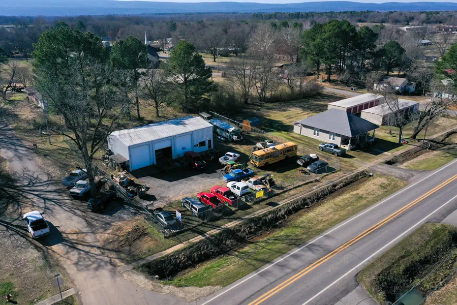 Located along Highway 28 in Plainview, Arkansas, this commercial shop building is ready for its new owner! The 30'x50' shop sits on five city lots and is completely perimeter-fenced with chain-link fencing. The front of the shop has three bay doors, along with an office for customers. Over the office, a storage loft could easily be renovated as a small apartment. The shop has a four-post lift and two-post lift that will convey to the new owner, along with an air compressor and waste oil tank. The compressor is plumbed throughout the building with PEX air lines. Outside there is plenty of room for vehicles and storage, as well as an RV hookup complete with power, water, and city sewer. This is a great opportunity for someone who wants to be in business, or this could be an excellent shop for personal use.
