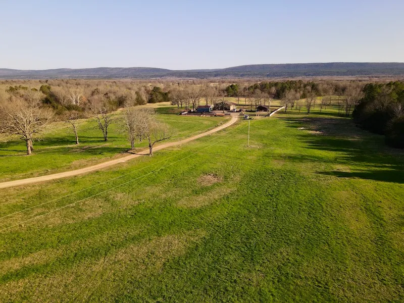 This is a rare opportunity to own an excellent farm that is completely high-fenced with an 8 ft. chain-linked fence. Two Mile Creek flows across the gently rolling terrain, which is a great mix of improved pasture and timber that attracts and holds wildlife and has consistently produced large deer. The neighboring property on the west and south borders are pine plantations and are excellent bedding areas for the deer and turkey that also use this farm. The other neighboring property is a large farm with open pastures and allows very limited hunting. Access many stand locations on a network of trails that provide travel routes to prime locations regardless of wind direction. Approximately 1/3 of the farm is in the improved pasture that has been sprayed and fertilized, producing about 200 bales of some of the finest quality hay in the region. At the heart of the property is a 1200 sq.ft. 2 bed 2 bath maintenance free main house. The inviting kitchen has a large island with granite countertops, custom cabinets, a dishwasher, a microwave, and an electric oven/stove. The floors are finished with tile throughout the home. The Bathrooms also have tile garden tubs/showers with custom cabinets and granite countertops. Step from the main living area into the attached 1200 sq.ft. heated and cooled shop that is spray foam insulated with 6-inch walls, creating a wonderful "barndominium". The shop is finished with sheet rock walls, concrete floors and two large overhead doors. Near the main house and just a short walk on a cement sidewalk is another 600 sq.ft. 1 bed 1 bath guest house that is maintenance free with metal siding, metal roof and a nice concrete front porch looking over one of the hay meadows. Other outbuildings include a second 20 x 30 shop, animal shed, greenhouse near the main house and another nearly new 30 x 60 barn, completing the perfect rural country home. Minerals owned by the Seller convey.