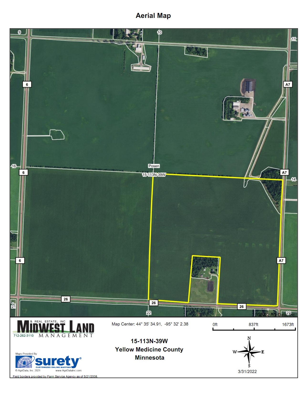 Land buyers, here is an excellent opportunity to purchase a hard to find highly tillable tract of Yellow Medicine County farmland at public auction. The Maertens farm has been very well farmed and cared for by the family for the past 6 decades. The farm boasts a 92.7 Productivity Index with the primary soils being Amerit-Swanlake, Canisteo, Amiret and Webster. Tile maps are available upon request.