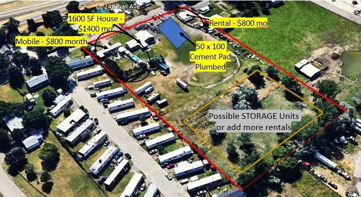 5 AC Land (*county tax is incorrect it says 6 AC ) Light industrial zoning Outside City limits ( No Cannabis, to close to residential) 3 rentals with room for alot more 50 x 100 Cement pad with electrical, water available, septic installed Quiet area Highway frontage Taxes 2022 - $6156 Public Water - Very low bill Power - 110-220 Separate septic for each home site.