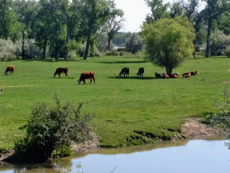 Beautiful pivot irrigated riverfront ranch currently being operated as a registered cattle ranch. Newer pivot that irrigates 50 acres planted to very productive pasture hay mix with a good mix of grass and legumes. Excellent working facilities with a 40 x 60 barn/shop that includes indoor livestock working area and a heated office and vet room. There is a nice set of corrals with 10 pens all with automatic frost free water tanks. There is an abundance of wildlife including trophy whitetail deer, turkeys, ducks, geese, and pheasants. The year round creek runs full length of the property providing good year around livestock water. This ranch is located very near I94 and only 30 miles east of Billings, MT.