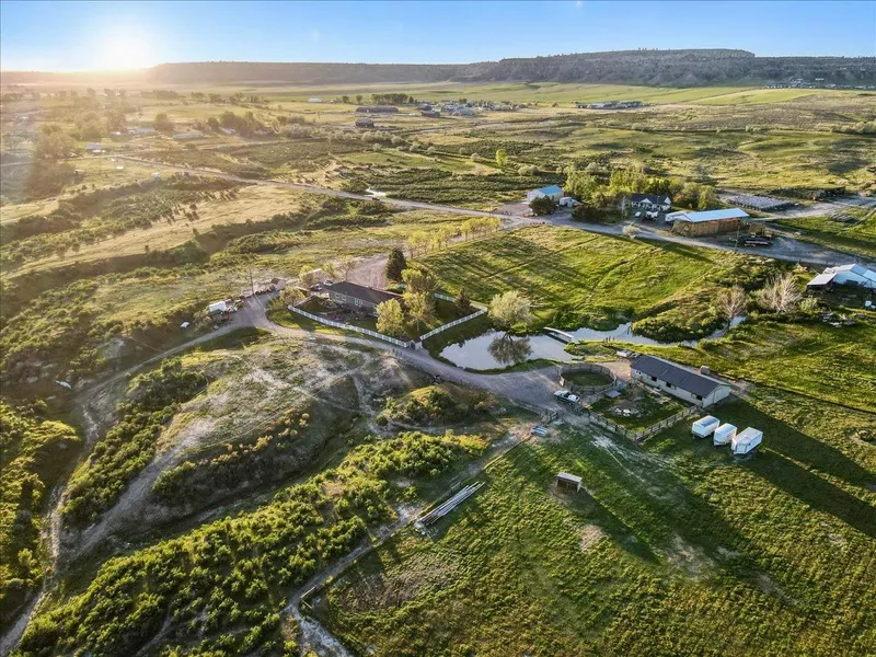 For your animals, keep them sheltered in a spacious 30’ x 60’ barn with three stalls. The property offers ample hay storage, a tack room, a corral, a round pen, and a three-acre pasture with secure goat fencing. Find a private oasis by the pond or marvel at the stunning sunsets that provide a backdrop while lounging by the inviting fire pit.