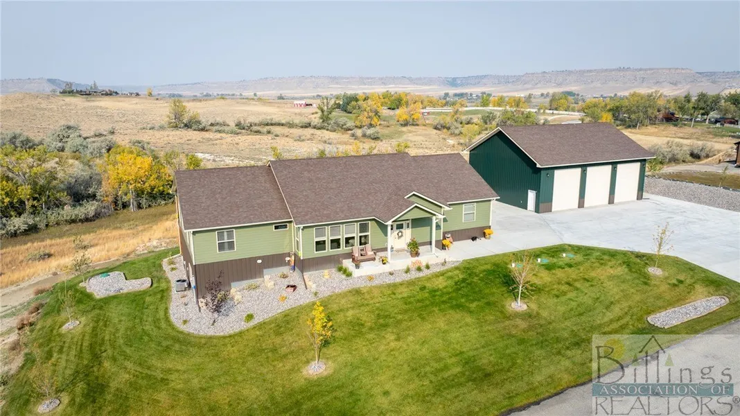 Custom built home on 1.63 acres with a walkout basement and covered patio/deck to take advantage of the views! This large well designed home boasts so much space with the main floor living room, dining room. office area, and kitchen with a walk-in pantry! Primary suite with deck access and large tile shower, and another bedroom and full bath and large laundry room on the main floor. The basement offers two large living spaces, 3 additional bedrooms, a full bath, plus lots of storage! Attached 3 car garage and an additional 40'x48' heated shop with three large overhead doors with extra parking on the side.