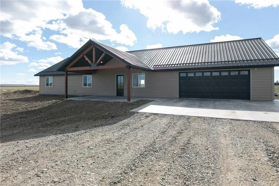 Your Montana country lifestyle awaits in this newly constructed one-level home on 1+ acre. Wide open views in all directions, this brand new home offers affordable rural living and plenty of elbow room, all just 20 minutes from city conveniences. Private septic, two 2,200 gallon cistern(s). Room for shops, toys and a quiet, relaxed lifestyle. Oversized garage, maintenance free exterior. Photos are of similar home(s).