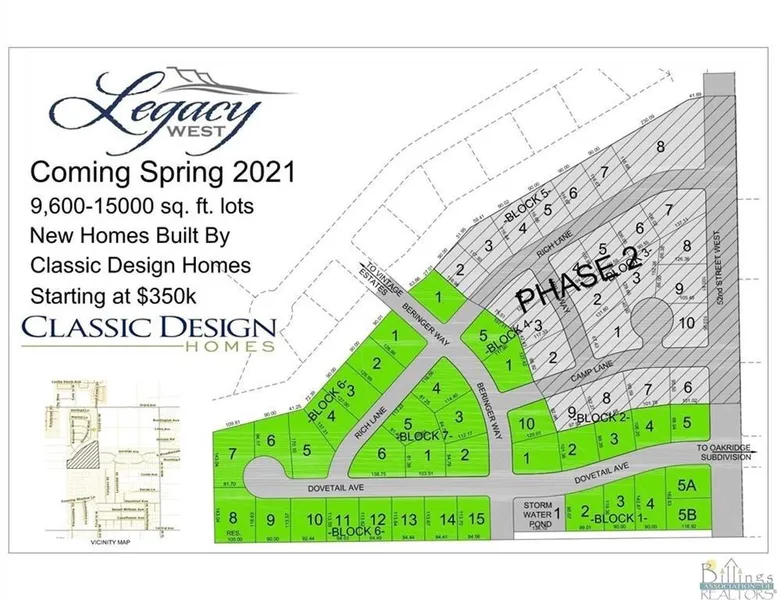 Welcome to Legacy West, a new luxury subdivision located in the highly desirable Westend of Billings. Lots starting at $79,000 and ranging to $98,000. Classic Design Homes is the exclusive design/build firm at Legacy West, ensuring every residence is customized for the client and built to the highest standard. Roads being finished. Construction can begin in May.