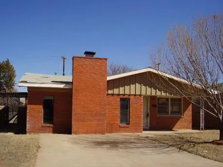 Exposed concrete slab floors would look great stained and etched, large living area has a fireplace. Ceramic tile in kitchen and utility room. Home is near elementary school.