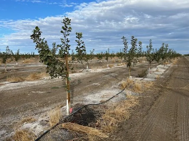 A rare, hard to find piece. Well-prepped and professionally managed pistachio orchard entering third leaf with Golden Hills cultivar on UCB-1 rootstock; planted on berms with 16' x 19' spacing in 2022; all trees staked and tied; irrigated from two ag wells equipped w/electric motor and turbine pump designed for 800 GPM yield; supplies micro-jet sprinkler system; Class 1 and 2 soils with excellent natural drainage; no flood plain issues here; optimum west valley micro-climate; enrolled in Williamson Act program.