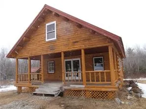 Log home on a private lot with nice farmers porch, located close to lakes and rivers for summer recreation. Galley kitchen with open floor plan, eat in bar with dinning area, large living room with double doors to the front porch. Open to the ceiling and cat walk between the 2 upstairs bedrooms. Living room has a wood burning stove, and is also heated with a monitor heater. First floor bedroom, full bath and walk out basement, partially finished basement waiting for you to finish off. All sitting on 6+ acres of land plenty of room for gardens or horse field. Some mountain views, great hunting, fishing, rec trails and golf course nearby, close to the NH border.