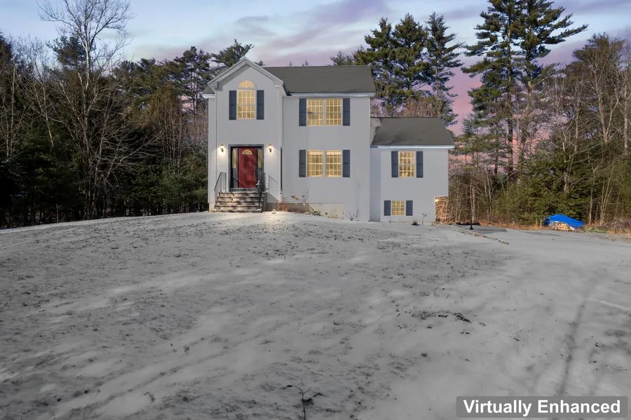 Offer deadline is Monday 1/29 by noon please.Introducing this fabulous open concept Colonial home in a quiet cul-de-sac neighborhood of similar homes! Step into the elegant foyer for an impressive first impression. This 3-bed, 2.5-bath residence boasts a see through glass fireplace, elegant cathedral ceilings and hardwood floors, creating a warm and inviting ambiance. There are 3 bedrooms on the second floor including a primary bedroom suite with a bright and sunlit walk in closet and bathroom. With a two-car garage, central air and sitting on 2 acres of a private, wooded country lot that offers tranquility and space. The backyard features a deck and an above-ground pool, perfect for relaxation. Don't miss the chance to call this property your home!
