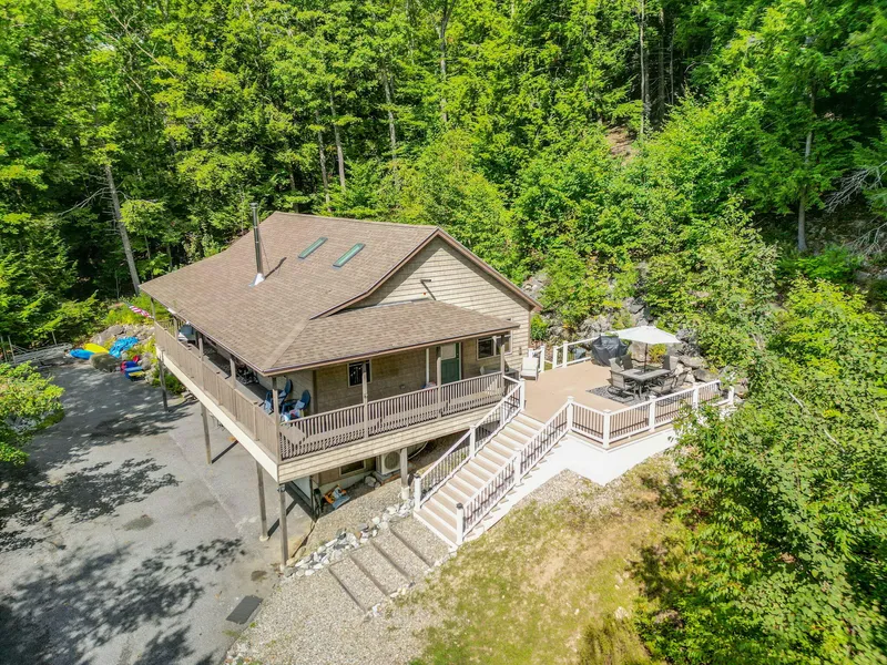 Experience the perfect blend of serenity and modern living in this breathtaking waterfront home on picturesque West Pond, nestled in the foothills of Southwestern Maine. This inviting home boasts an open-concept kitchen and living area, complete with vaulted ceilings and skylights that flood the space with natural light. The kitchen is a chef's dream, featuring granite countertops, sleek new appliances, and hickory cabinets.The main floor offers two bedrooms and a full bath, while the entry level includes a versatile bonus room and additional bath—ideal for guests or extra space. Step outside to enjoy the wrap-around porch and a brand-new 20x20 composite deck, perfect for outdoor entertaining, with an area below for added comfort.This property includes a deeded easement to the water, complete with a maintenance-free 30-foot Allumilite dock with adjustable stairs—your own slice of waterfr...