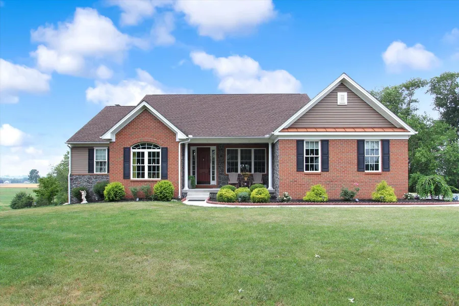 An impressive custom-built three-bedroom rancher in Paradise Township with surrounding scenic vistas!! Looking to create your own private equestrian facility? Look no further...this stunning farm/home greets you with a large covered front porch and decorative mature foliage. Entering into the foyer you will notice the overall architectural design is exquisite with unique columns, tray ceilings, wainscoting, crown molding, gleaming wood floors as well as french doors. The upgraded kitchen boasts granite countertops, custom ceramic backsplash, stainless appliances, soft-close cabinetry, a pantry, plenty of workspace, a charming breakfast nook surrounded by windows, and tons of sunshine. The adjoining living room comes complete with vaulted ceilings as well as a cozy corner stone fireplace that is adorned with a wood mantle. Off of the kitchen, you will find a wing that houses two large bedrooms, both with floor-to-ceiling closets, a bathroom with double sinks as well as a custom-built mud room and first-floor laundry. The Primary Suite, with an enclosed full bath/whirlpool tub, is nestled in a private nook off of the living room. There is also a beautiful dining room and a stately office that will make entertaining guests or clients a breeze! If you need additional living space this property has a substantial basement with a completed, decorative full bath and pellet stove insert that is just waiting for your final touches! This level offers a walk-out to the shaded patio located at the rear of the home. Situated on 30+ acres, this property can accommodate both your horse's and your family's needs. It also comes complete with a covered raised deck, a huge pole barn (96' x 48'), a 2-car attached garage, a 4-car detached garage as well as plenty of additional parking space located by the extensive pole barn. This barn offers 2 oversized garage doors for possible farm equipment and 2 camper- sized doors for RVs or trailers. Plenty of land just waiting to house an outdoor ring and indoor arena!! The solar panels are PAID in FULL and propane tanks are owned. This property is surrounded by rolling farmland and genuinely breathtaking views..... Don't miss your opportunity to see this for yourself!! Schedule your showing.......