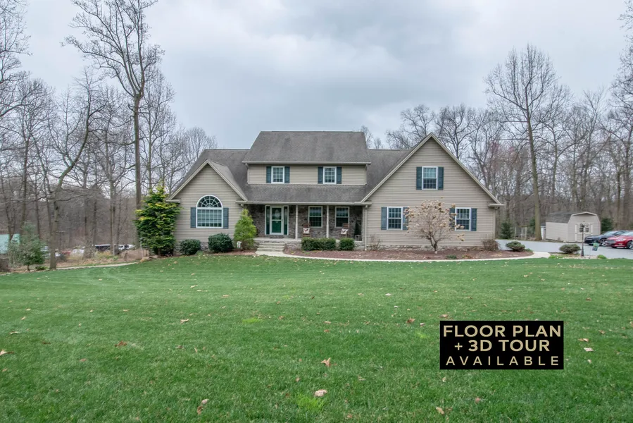 Imagine living in a beautiful rural setting that is also close to Route 30 and major routes and amenities. Now imagine entertaining friends and family inside and out, year-round in a gorgeous home and location - welcome to 310 Gun Club Road! Work from home or have virtual school needs? You'll love the separate office/flex space immediately off of the front entryway. Looking for first-floor living with the flexibility of more space when you need it? Check out the first-floor primary bedroom with a private bathroom - heated tile floors, soaking tub, shower, and double sink - it's got it all! There is a convenient main floor laundry room as well as a central vacuum system. Do you have family or friends needing a place to sleep and/or staying for a while? No problem! They can sleep in the 3 upstairs bedrooms which share a full bathroom and/or the basement which also has a full bathroom. Love to cook (or look like you do)? There is a gourmet custom kitchen with stainless steel appliances, an island with a prep sink, double wall ovens, a propane cooktop, a separate pantry, under cabinet lighting, and tons of thoughtful storage spaces! Are you more of the outside chef type? There are propane hookups on the deck for your grill and/or smoker as well as plenty of room to enjoy the grilled and/or smoked creations while enjoying the serene surroundings! Making your way to the finished walkout basement, you'll find ample entertaining space with lighting that was professionally designed, a wet bar, more storage, as well as a full bathroom. When you walk outside onto the covered patio space, you have so many options of what to do next - will you hang out with a drink and a good book under the pergola, relax in the hot tub, cool off in the pool or simply wander the expansive yard enjoying nature? The deep, oversized 2 car garage with painted drywall and epoxy floors can fit not only a full-sized truck but has an attached side garage/shed with a separate entry door, as well as walk-up finished living and/or storage space above the garage. A geothermal heating and cooling system, as well as a water manifold (to ensure constant water temperature and pressure), are what make this large property so much more efficient and comfortable than similar-sized homes! There are too many perks to this home to list, you'll just have to come and see it for yourself! Because the owners built it, this is the first time this home has ever been on the market, so don't miss this opportunity to be its next loving proprietors.