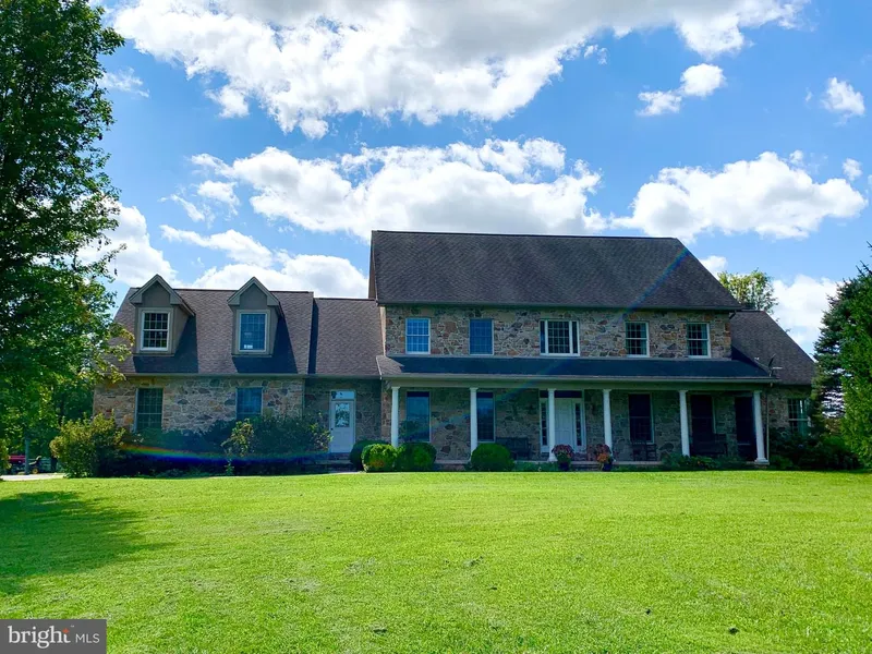 513 Brenneman Drive... Classic and Custom Pennsylvania field stone colonial awaits visitors down a long meandering driveway surrounded by beautiful open fields and spotted with lovely trees. (real field stone, not veneer) "Bucolic" comes to mind, almost parklike as your eyes sweep from one side of the property to the other. (Survey attached.) Floor plans (included) show a large center hall with office (music room) + the living room to the right dining room on the left and enormous kitchen in the back of the house. Extra wide doorways throughout house. The eat in kitchen is more than generous in size, full of light and well laid out. It is the heart of this home. 37x15 with 9ft ceilings facing south with a sizable bank of windows this happy space greets you. Lots of storage space, massive center island 12.3 x 4. 3 Stunning Amish hand made Hickory kitchen cabinets. Corian counter tops. All appliances are stainless steel. Thermador center island stove with matching big good looking range hood. Double wall oven. Built in microwave. Built in shelving for recipe books. Desk area. Butler's pantry. It has an eating area that can easily accommodate over 12 people. One door leading to the back of the property, and one door leading to a charming screened in porch facing south-east. Mudroom on the 1st floor near the kitchen with laundry, slop sink and additional refrigerator and one freezer. Full bath across from the mudroom, laundry. A sunken living room shows off a Pennsylvania field stone fireplace with raised hearth and block wood mantle. Very handsome. The room measures 30' x 20' with 10 ft. beamed ceilings. French doors open to patio off the living room. The living room and kitchen are separated by a large detailed 12 ft. archway making the rooms all but one. All the wood trim throughout the entire house(doorways, windows and floor boards, and ceiling detail) were made on site from solid oak. Office/ music room/ tv room: This room faces north-east and has custom built bookshelves and is located between the front hallway and the living room. The dining room/ 5th bedroom/ office: is located on the other side of the front hall speaks for itself. It has a lovely tray ceiling, hard wood flooring and has room for corner cabinets. It can also be adapted into an office. This room measures 14x13.9 There is ample parking for over 10 cars. Spacious basement with 9ft ceiling with Access is from the 1st floor inside. There is over 2000 square ft. of unfinished space. Imagine the possibilities! There are 4 bedrooms on the 2nd floor. Primary bedroom measures 18x18.6 with 8 ft ceilings, quite substantial with incredible views. Enormous walk-in his and her closet. Primary bath has two separate handmade vanities with Corian countertops. Walk in shower and separate whirlpool tub. Bedroom 2 : measures 32x15 with windows and dormers on 2 sides of room giving it luscious light throughout the day. Faces North-South Bedroom 3: Measures 12x15 facing North. Great views! Bedroom 4 measures 14x14.8 facing North. Great views! Additional bathroom on the second floor. Pool: There is an L shaped pool, (vinyl liner 3 years old) It is approximately 50' from the back of the house. and fenced in. Tennis Court with great outdoor night lighting and high wire mesh fencing the court sits further from the house. Refer to aerial photo. It faces north south. There is a large Pole Barn used for storage and additional cars. Yellow Breeches tributary runs thru the property (refer to survey and or aerial)..Brings wild life in abundance; Trout, Fox, Turkey, unusual birds such as Heron, Egrets and Eagles.