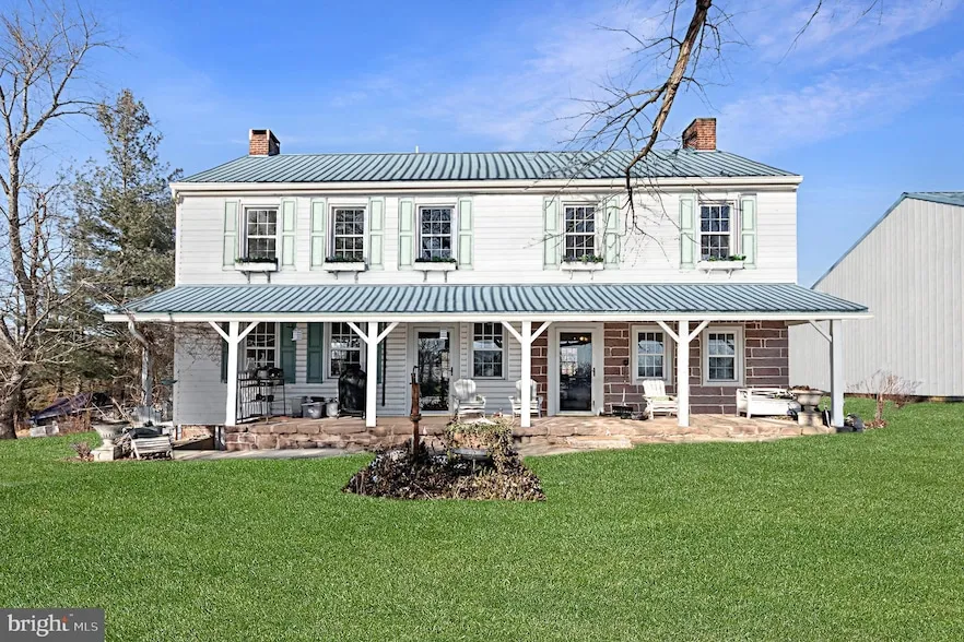 This stunning 25-acre property offers ultimate privacy, nestled down a long drive. At the heart of the property is a charming 1700s stone farmhouse with 3 bedrooms and 2 1/2 bathrooms, spread across 2,300 square feet of living space. The home retains its historic charm with original wide plank hardwood floors, complemented by some new LVP, and features three large stone fireplaces converted to propane. The owner's suite boasts a walk-in closet and a spacious master bathroom. Additional highlights include a large upgraded kitchen, laundry conveniently located on the second floor, and plenty of headspace throughout, with a walk-up attic that could be finished to add even more living space. The property also includes a detached 40x60 pole barn, formerly a helicopter hangar, now used for horses with 2 matted stalls currently with plenty of space to add more , storage and a two room office. Alongside the barn, you'll find a detached two-stall barn and multiple smaller buildings. Outside, enjoy a professionally installed 90x120 riding ring with a French drain stone base and stone dust & sand top layer. The fenced-in acres includes a 12x20 run-in shed for horses, an area once used for pigs and goats with additional sheds, and there is a large invisible fenced area for dogs. For those seeking additional recreational space, there's an 200 line electrical hookup behind the house. A stream runs through the property, adding to the serene atmosphere. With a metal roof, upgraded HVAC, and the property in Clean and Green, this scenic and private estate is still conveniently close to all local amenities, offering a perfect balance of seclusion and accessibility. Don't miss out on this slice of heaven.