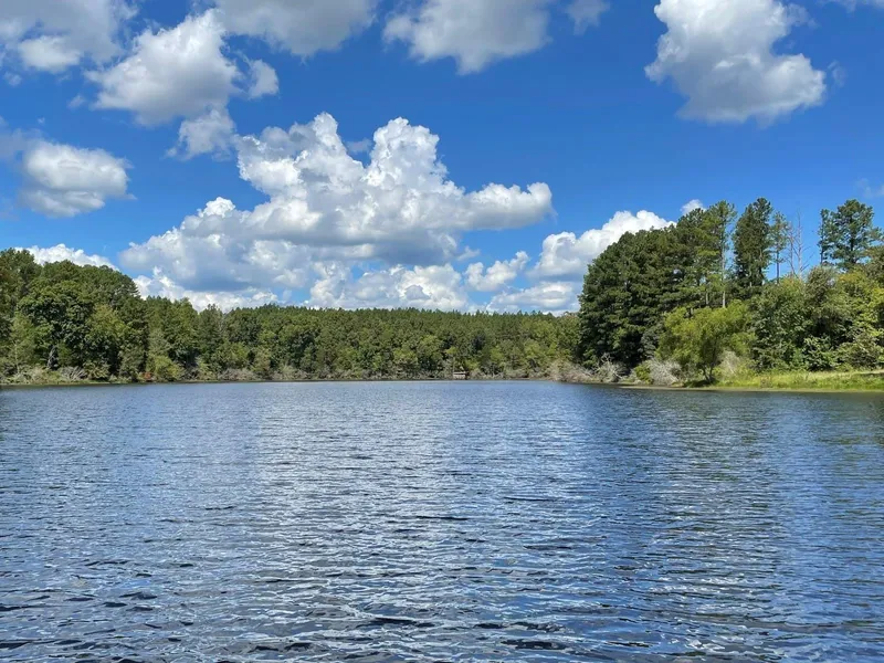The property lies on the south side of Legion Road and extends more than a mile deep from the pavement. Access is good with more than 800 feet of paved road frontage. Internal roads are in good condition and give access over much of the tract. A ponded site of about 2 to 3 acres, which was recently drained for road improvements, is near the center of the property and has potential for management as a waterfowl area. The 12+ acre lake has been known to hold big bass and wood ducks.