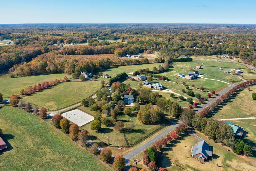 Picture the perfect 5-acre horse/hobby farm on a beautiful tree lined street of other equestrian estates. Freshly painted barn & 4-board fences. A combination of shade trees & pasture. 2 pastures w/access to a run-in shed. 2-stall barn/workshop, stalls w/mats, sliding stall fronts, large windows. Tack room & hay loft. Separate feed & storage barn w/utility sink. Two electronic gated entrances allowing for drive through w/trailers. 90' x 160' arena w/stone dust & screenings. Enjoy morning coffee on front porch overlooking the pastures or relax on your back deck & enjoy the pool & Koi pond. Well maintained home w/2021 roof & 2022 heat/air systems. Laminate wood throughout living spaces. Large vaulted great room w/floor to ceiling stone fireplace & catwalk. 2nd floor private, spacious primary suite w/Juliet outdoor balcony. Finished basement offers exercise room w/sink, storage, rec room & laundry room. Just 10 minutes to thriving Rock Hill & a straight shot to I-77.