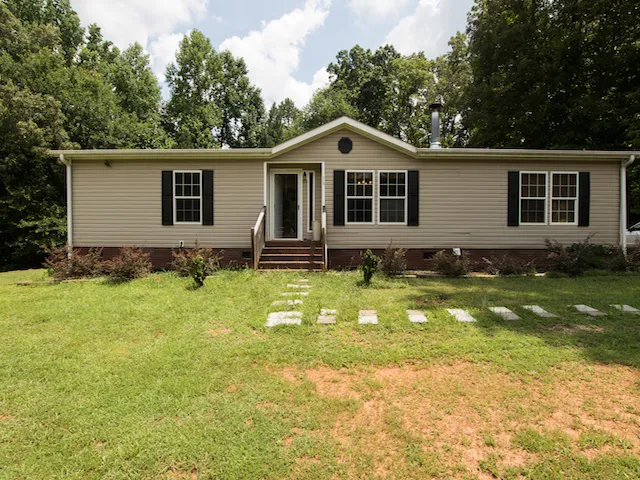 Stunning oakwood double-wide, brick underpinned, stone fireplace, island kitchen, garden tub, separate shower, like-new laminated floors, central heat and air, beautiful deck with hot tub, roomy clothes, well kept. This house is seating in an acre lot surrounded by trees and vegetation. List price includes refrigerator, range and dishwasher