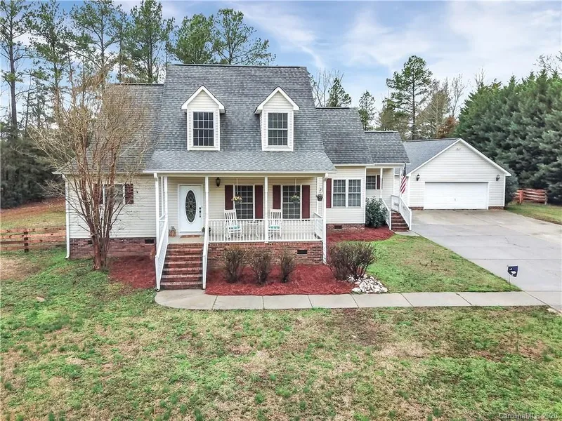 Wonderful home with rocking chair front porch on over 1 acre. Walk in to the beautiful oversized great room with gas logs and fireplace and gorgeous hardwood floors. Beautiful kitchen with stainless steel appliances, light filled breakfast room and formal dining room make this semi-open floor plan ideal. Main floor owners suite has large walk in closet and bathroom with double sinks, garden tub and walk in shower. Upstairs boasts two large bedrooms, bathroom and huge unfinished room that could easily be finished for fourth bedroom or bonus room. Outside there is a nice deck perfect for grilling or enjoying the privacy of the property. There is a huge detached garage/workshop perfect for cars and or projects. This is a fantastic home you won't want to miss.