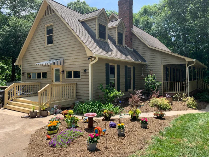 Magical Woodlands! Beautiful custom home on a 1.25 acre wooded lot in beautiful neighborhood with no HOA w/i minutes of Charlotte. Great for outdoor activities with multiple decks, covered porch and new 2019 spa/hot tub! Storage building for yard equipment AND your own tiny cabin with electric. This home has been well-maintained and loved! Tiled kitchen with new appliances in 2019, and a sunny breakfast area to enjoy the wildlife fun and antics in the yard. Formal DR with hardwood floors, newly carpeted living/family room with fireplace (wood stove insert) and recessed lighting. Owner's bed/bath is newly painted and carpeted and has a private deck. New carpet on stairs. Two large bedrooms, full bath and bonus room upstairs. 2nd living quarters attached with own entrance, deck, full bath, and kitchenette with new full-size refrigerator new in 2020. HVAC units new in 2015 and 2019. On dema...