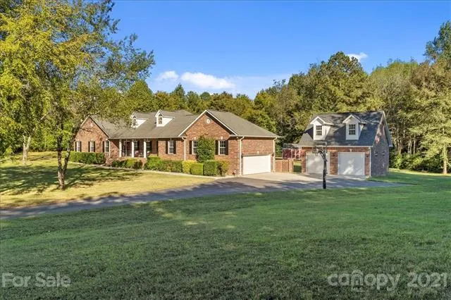 A beautiful all-brick, custom ranch home located on 6.63 acres in a quiet neighborhood is a dream come true! This well-maintained home features stainless steel appliances and a large island in the spacious kitchen, gas log fireplace in the living room, breakfast area, dining area, laundry room, 4 bedrooms, his and her closets in the primary bedroom, 3 full bathrooms, 2 car attached garage, 2 car detached garage with bonus room, and so much more. Outside you will find a covered front porch, large deck, fenced backyard, storage shed and wooded area with trails perfect for riding and/or walking.