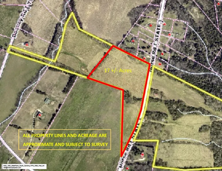 For more information or to view this land, call Tim Helline with Carolina Farms & Estates 803-242-8953. 17 +/- acres of beautiful land with a gentle rolling topo. 90% pasture land with plenty of road frontage. Seller will subdivide or sell as a whole. Easy access to Rock Hill and York with shopping and dining amenities. Perfect for a residential homesite with plenty of room for a barn and pasture! $12,500 per acre.
