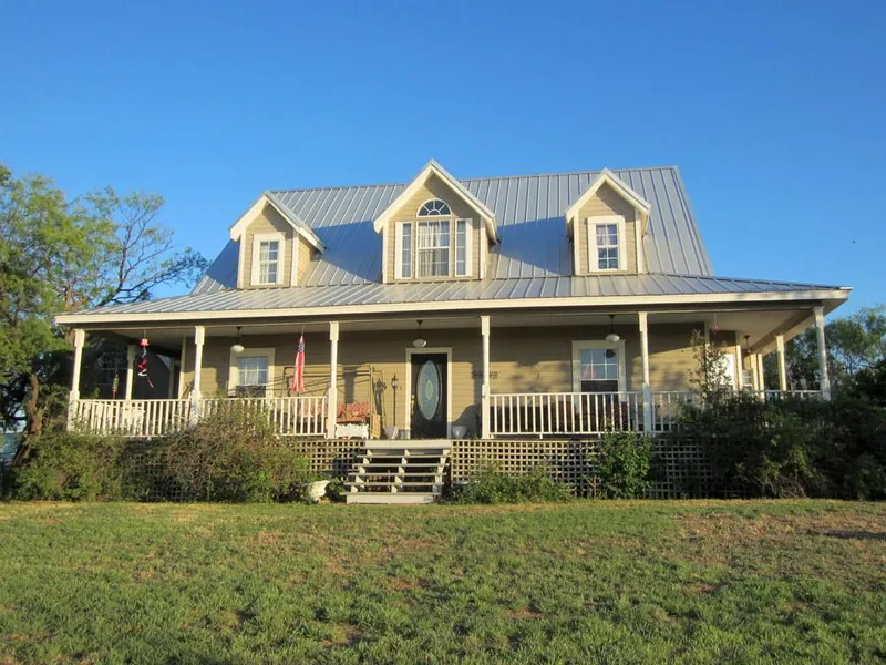 Two-story farm house with wrap-around porches built in 2002 on 13 acres with 3 stock tanks, barns, conditioned workshop, RV storage, pens and cross fencing give you the best of country life. Main house has 3 bedrooms, 2 1/2 baths with knotty pine floors, soaring ceilings, loft and open layout great for entertaining. Guest house has 1 bedroom and 1 bath full of charm. Full of character and energy-efficient too with income potential!