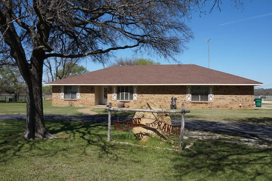 Beautiful 93.16 acres, m/l, ranch with coastal, alfalfa and native grasses, two (2) barns, one with eight (8) pens, corral, walker, round pen, multiple loafing sheds and other out buildings; Excellent equine facility; This three (3) or four (4) bedroom brick country home offers a dining/kitchen combination separated by a breakfast bar; The kitchen hasa free-standing smooth top stove, lighted microwave vent-a-hood, dishwasher, trash compactor, lots of counter work space and cabinets; A home office could be used as a fourth (4th) bedroom, study or an exercise area; The den features picture-frame paneling, a WBFP and built-in book shelves; The master bedroom features an adjoining ensuite with a tub/shower combination, aprivate water closet, dual sink vanity and linen cabinet; Septic system; Seven (7) water wells and ponds with sprinklers for cultivation; Good hunting along the wooded seasonal creeks; Fort Belknap Co-Op Water for household use; Pipe fences, gates, cross fenced; Lighted arena; Barn w/living quarters consisting of one (1) bedroom, a bath and a heated and cooled living/kitchen combination; 80' x 18' mobile home with CH/A, washer, dryer and kitchen appliances for extended family or ranch staff; Concrete storm shelter.