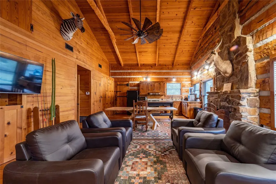 Family or corporate retreat. Very Secluded Ranch with River on three sides. Legacy Ranch sits on the Long Bend of the Brazos River just as it pours into Possum Kingdom Lake. Approx. 2.5 miles of BRA River frontage. 188 Deeded acres and is surrounded by approx. 225 acres of private Brazos River Authority Land (BRA). This a a rare find and a great opportunity for the Sportsman. The ranch has abundant lodging for large families or groups. The property boasts two log cabins, a small farmhouse and a finished out Army barrack for large groups to enjoy. New large stock tank is being completed. Beautiful large live oaks trees are throughout the property. Broker is part owner in the property.