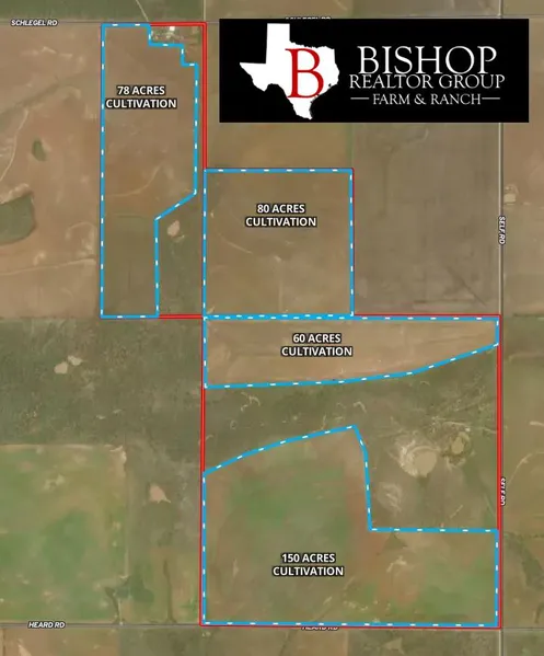 Schlegel Farms will attract both the avid wildlife enthusiast and cattle producer. The contiguous parcels provide the perfect alternation of cultivation and mesquite cover with an abundance of natural water supporting both wildlife and cattle operations. The property features a 1424 sq. ft. home with several barns, a 2400 sq. ft. shop, 6 stock tanks plus water draws provide ample water for both cattle and wildlife. Working pens. Approx. 368 acres cultivation and 138 acres of grass/pasture for a total of 506.5+/- acres.