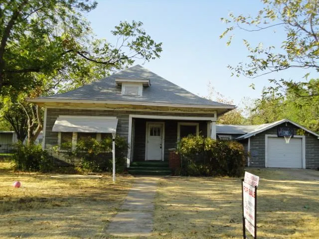 Three (3) bedroom, one (1) bath frame home located on a large corner lot with a chainlink fenced yard; Living room opens to the formal dining area; Three wall heaters (gas); One (1) refrigerated window air conditioning unit; A single French door separates the dining area from the kitchen; The U-shaped kitchen features Formica counter tops, an open pantry, a free-standing electric cook stove, built-in vent-a-hood, a garbage disposal, a water line to the refrigerator for an ice maker; Step-down utility room with washer, dryer connections and overhead cabinets for storage; The single car garage has a metal garage door, wired for a garage door opener and has additional storage space for yard equipment, tools, etc. and a workbench; The bathroom has a tub/shower combination, a vanity, commode and a closet; Hot water heater (gas).