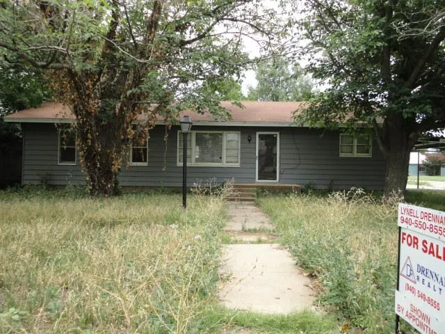 Three (3) bedroom, two (2) bath frame home with exterior siding on a large corner lot; Living room with wood floors; Kitchen/dining combination with laminate floors; Spacious utiity room; CH/A and hot water heater (gas); Master bedroom has an adjoining bath with a vanity, commode, medicine cabinet and step-in shower; Large covered deck; Detached 2-car garage with a living quarters, bathroom and closet; Fenced yard with mature trees; Needs a lot of repairs, work and TLC.