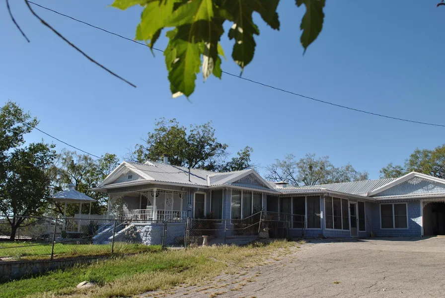 Spacious five (5) bedroom, two and a half (2.5) bath frame home with a one (1) car attached garage; Living room with a gas log stove; Galley kitchen with a built-in electric oven and a 4-burner gas cooktop, double stainless steel sink; Full size washer/dryer connections; Split bedroom arrangement; Window A-C units and wall heaters throughout; Cellar under the house; Sun room (could be a 6th bedroom, craft room, or home gym); Lots of storage space; Additional one car attached carport; 38' x 24' metal workshop with RV parking (inside); Fenced yard; Gazebo.