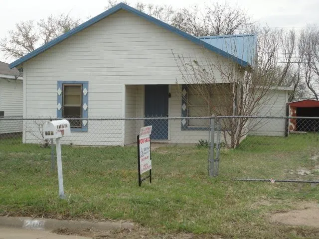 Two (2) bedroom, one (1) bathroom fame home in a settled neighborhood; Living room has decorative design wood floors; The entry has ceramic tile floors; The kitchen has ample cabinets, counter work space, a free-standing electric cook stove and laminate floors; The dining area is located in the kitchen; A utility room and walk-in pantry is located next to the kitchen; The two (2) bedrooms and hallway have wood floors; 14' x 14' metal storage building with concrete slab floor and wired with electricity; Chain link perimeter fence around the front and back yards.
