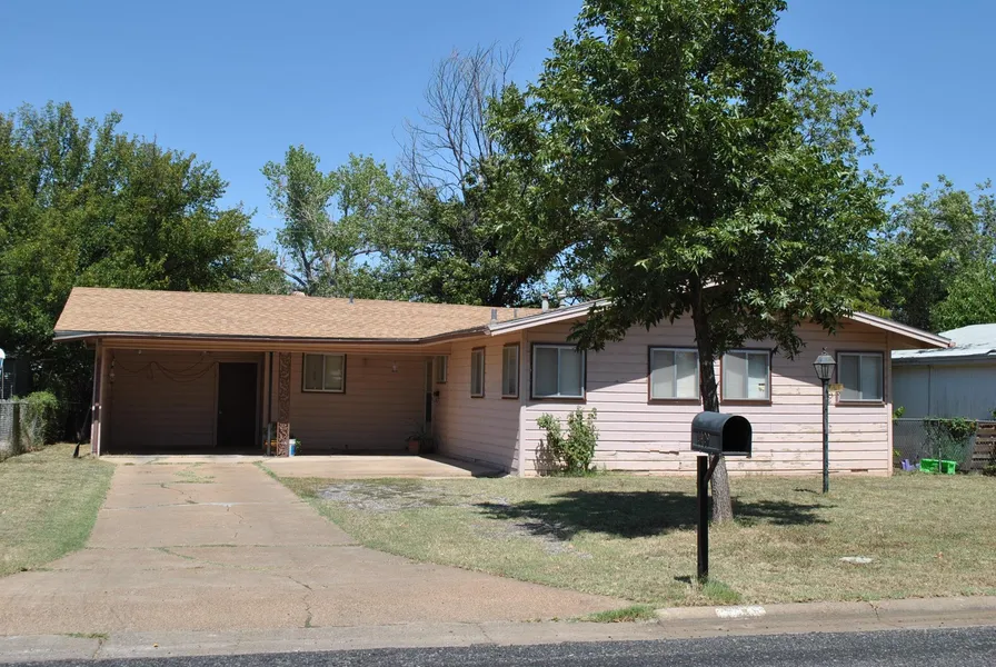 Darling three (3) bedroom, one (1) bathroom, one (1) car carport within half a block from Crestview Elementary school; Kitchen boasts vinyl flooring, double stainless steel sink, ample cabinet and counterspace, electric cooktop with vent-a-hood and a breakfast bar which offers additional cabinet space; The utility room is located between the carport and the kitchen and provides full-size washer and dryer connections, storage shelves and a hot water heater; The dining and living area are combined and share a ceiling fan and carpet flooring; The bathroom is located off the hallway and features tile flooring, a tub and shower combination, a vanity with sink and a medicine cabinet; The bedrooms are carpeted and have window coverings; The master bedroom has a walk-in closet and a ceiling fan; A large backyard boasts a metal 6' x 10' storage building and a chain-link fence; Being sold "AS-IS"; Price reduced to $45,000!