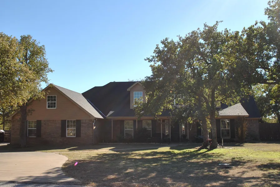 Stunning four (4) bedroom, three (3) bathroom, two (2) car oversized garage, two-story brick and siding home in Timber Ridge Addition, just minutes North of Graham; Wooded lot is 1.32 acres (m/l); Step up to a sweet covered porch and into a spacious entryway, continue into the den, and immediately enjoy the expanse of windows overlooking a gorgeous Gunite in-ground saltwater swimming pool; The kitchen with breakfast bar is open to the den (and the beautiful windows with backyard view) and is perfect for entertaining family and friends; Split bedroom arrangement; Formal dining room could be utilized as an office; Laminate flooring in the den, kitchen and hallway; New Berber carpet in bedrooms; Neutral paint colors throughout; The den boasts a rock WBFP with built-in display shelves and cabinets; Wired for flatscreen tv and surround sound; The kitchen features ample cabinets, a built-i...