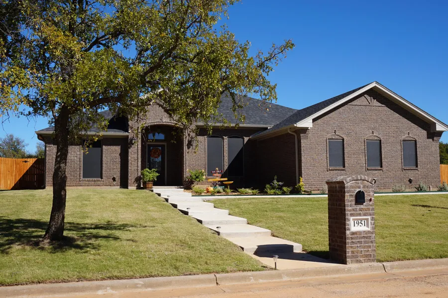 Beautiful brick home located on a large corner lot; Built in 2016, this three (3) bedroom, three (3) bath, two (2) car attached garage has an open concept den with a corner propane log fireplace, dining area and kitchen; Fantastic kitchen with custom cabinetry, granite counter tops, tile back splash, under