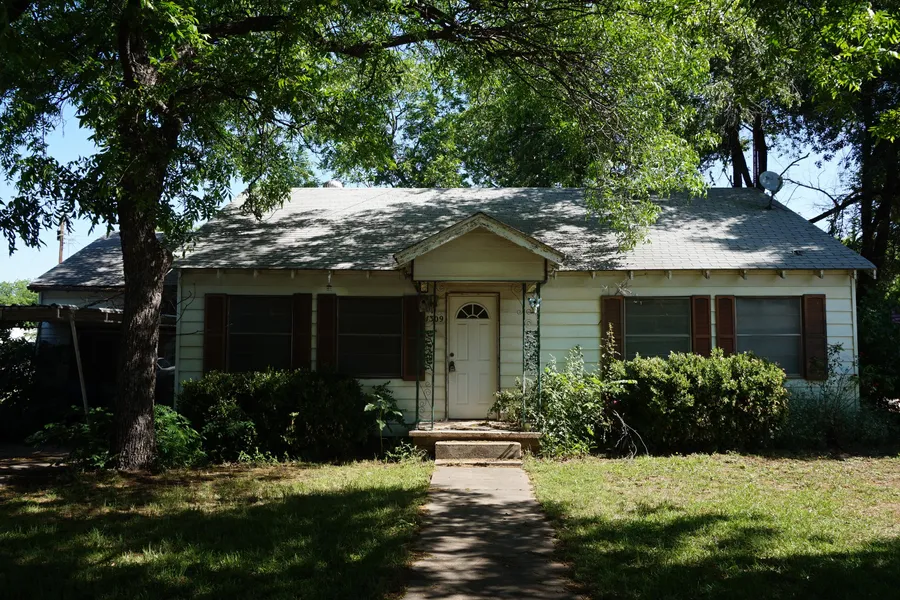 Two (2) bedroom, one (1) bath frame home in a settled neighborhood; Spacious living room opens to a kitchen, dining combination; The kitchen has a free-standing smooth surface stove, lighted vent-a-hood, refrigerator, dishwasher, double stainless steel sink and pantry; Hardwood floors (need to be refurbished) and vinyl floors; The garage conversion could be a second living area or third bedroom; This room has plywood floors, a step-down sliding glass door (broken) and broken window; CH/A and hot water heater (gas); The utility room is located between the kitchen and den area; A hall bathroom serves both bedrooms and offers a tub/shower combination, vanity and toilet; Open patio in back yard; Two storage buildings; Chain link fence; Mature pecan trees; Needs cleanup and repairs; This property is sold "AS IS".