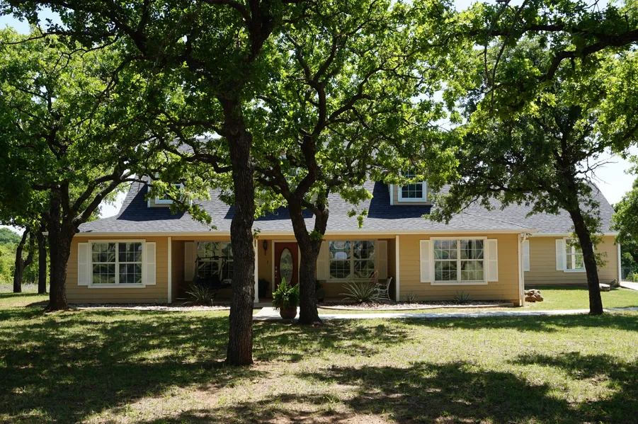 Very pretty three (3) bedroom, two and one-half bath, country home on 13.53 wooded acres, m/l, just minutes from Graham; This home has an oversized two-car attached garage with automatic garage door opener and attic access; The den, bedrooms and home office have carpet; Ceramic tile in the two (2) full bathrooms; Hardwood floors in the kitchen, dining area, powder room, hallway and utility; Open concept den, kitchen and dining area; The spacious kitchen has a breakfast bar/island which features black granite counter tops, a free-standing smooth top stove, refrigerator, built-in dishwasher, lighted microwave with vent-a-hood and corner pantry; The den offers an Austin stone WBFP with an insert and built-in cabinetry for media equipment; The French door in the dining area (with mini-blinds) exits to a covered patio; The master bedroom has two (2) walk-in closets, two (2) vanities, a step-in marble shower, a corner jetted garden tub and a private water closet; Split bedroom arrangement; CH/A and hot water heater (total electric); Ceiling fans, decorative lighting and plumbing fixtures; A 12' x 24' metal 2-story barn and 24 x 48' workshop on a concrete slab; Aerobic septic system; Partial barbed wire fence; Wooded property with deer, turkey and hogs; Small coastal field; Great soil for horses, livestock or a 4-H project