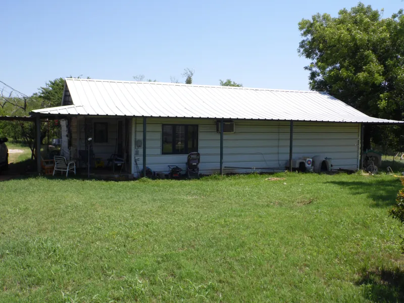 This 2,000.00 sq. ft. house has a metal roof, metal sides, 3 bedroom, 1 1/2 Bath with a 2 car carport . Unique home, with hardwood, floors, walls and ceiling is also wood. There is a porch that has been enclosed with a wood burning stove. the 13 acres is made up of nice oak trees, a creek, and enough open area for more barns , arenas. There is City of Newcastle, water and sewer. There is also a water well.