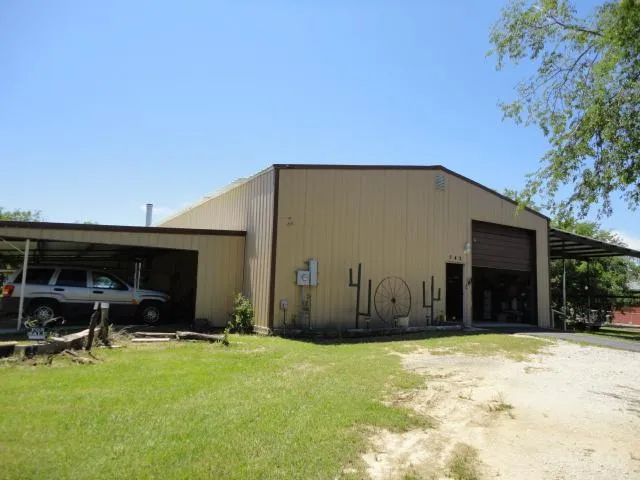 Lounge on the covered patio and view the lake; 60' x 40' metal building with a two (2) bedroom, one (1) bath living quarters inside; Large den with a rock WBFP and a heart that covers the entire wall; Adjoining gameroom with a pool table; Open concept den, kitchen, gameroom and breakfast areas; The kitchen has lots of cabinets, counter workspace and built-in appliances; The master bedroom is down stairs adjacent to the den; A second bedroom is located upstairs and has carpet on the floors; The bathroom has an elevated bathtub, step-in shower, vanity, medicine cabinet,contains the washer and dryer connections and has vinyl floors; Scored concrete floors throughout the rest of the living quarters; CH/A (propane) with wall heaters for emergency heat; Workshop with two (2) metal overhead doors that roll-up; Covered parking for vehicles and a RV motorhome on both sides of the building; A catw...
