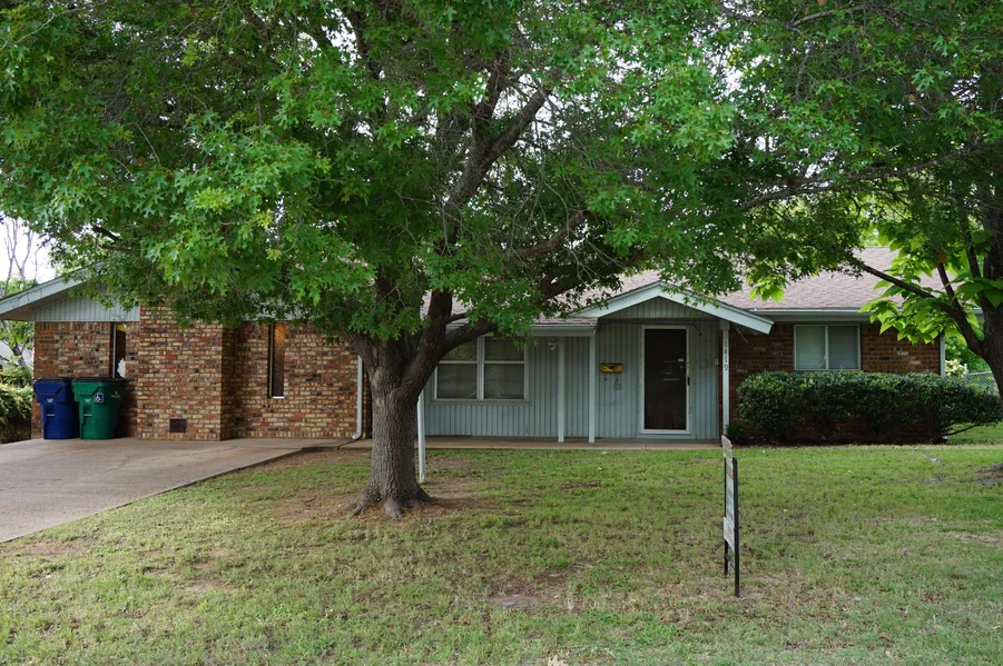 Three (3) bedroom, two (2) bath brick home located near Woodland Elementary; Two (2) living areas and one (1) dining room; Living room offers a wall of windows providing natural light; The den features a brick WBFP, beamed ceiling, paneling, built-in bookcase and TV shelf; The washer/dryer connections are located in a double-door closet in the den; Kitchen/dining area combination and bathrooms have ceramic tile floors; The kitchen features Formica counter tops, ample cabinet workspace, electric cooktop, dishwasher, built-in oven and lighted vent-a-hood; The master bedroom has an adjoining bath with a step-in shower, wall mount lavatory and toilet; Two (2) other bedrooms share a hall bathroom with a tub/shower combination, vanity and toilet; The living room and bedrooms have carpet; A door in the dining area exits to a covered patio that overlooks a chain link fenced yard with a dog run; A 16' x 9' wooden storage building is located next to a concrete slab with a basketball goal.