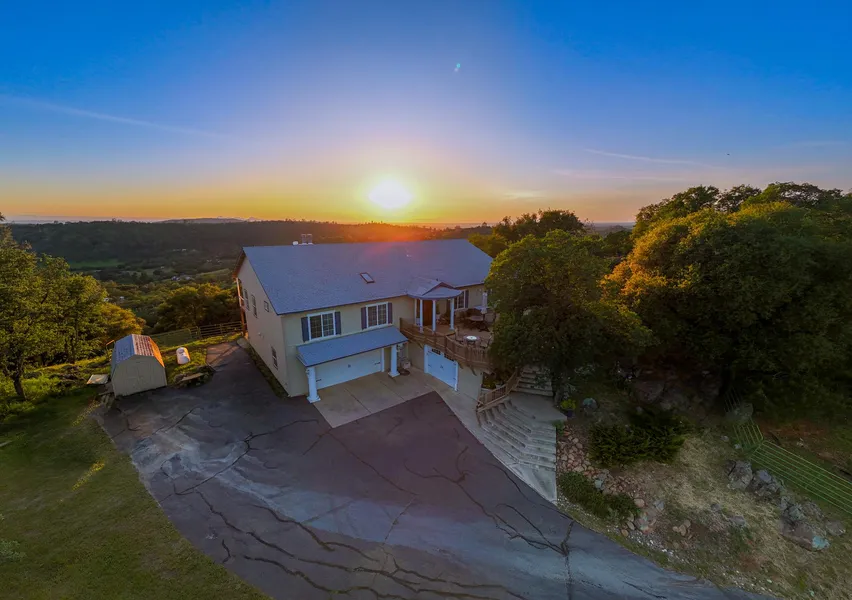 Escape the ordinary...Discover unparalleled luxury and sustainability in this stunning foothills estate! Marvel at breathtaking sunset views over the majestic Sutter Buttes. Large windows, open, airy floorplan, vaulted, intricately detailed ceilings. Delight in the exquisite craftsmanship of stacked crown molding with dentil trim, tall sculpted baseboards, and designer colors throughout. All powered by a self-sustaining solar system with 2 Tesla backup batteries and a Generac generator. Nestled on 5.01 private acres, this sanctuary boasts enchanting rock outcroppings, low maintenance landscaping, pastures and shelters set up for llamas and mini's plus ag. water. Entertain effortlessly with paved access, illuminated entry steps, and multiple view decks, spacious kitchen, dining bar and formal dining. Enjoy movie nights in your private theater or work on projects in the 3-car garage with indoor shop space and a separate office. With abundant storage and more, this is a must-see property for those seeking the ultimate foothills lifestyle.