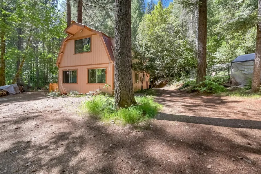 Go with the flow! Tucked back off a paved road, these secluded 38.39 acres feature a year round creek winding through an engaging forested setting. The expansive, ladybug loving property with sun, shade and room for animals and agriculture includes a comfortable home with metal roof, a hot tub, fenced garden and outbuildings. There's also a trailer for storage. The two story residence with balcony offers laminate and tile floors, compact kitchen with walk in pantry and cozy Great Room with a wood stove. Updating, upgrading and maintenance are needed but the bones and basics are in place to transform this massive rural retreat into a picturesque personal playground. Dip your feet, pan for gold, go fishing, wading and hiking right where you live. Shopping, services and several lakes are nearby. Here's a bargain priced compound with plus size potential ready for a new owner seeking fresh mountain air, space to spread out and the opportunity to do your own thing in peace and privacy.