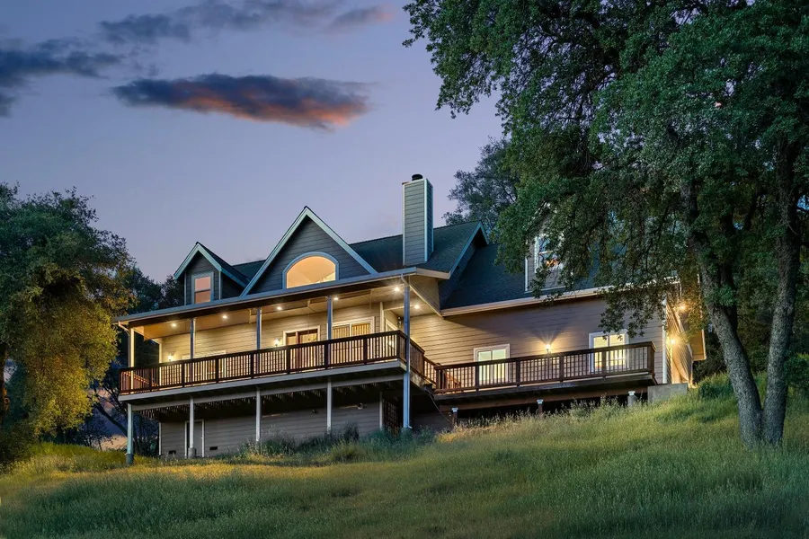 LAKE VIEWS! A stunning hilltop custom home on almost 12 acres. Breathtaking views down to the valley where kayakers, boaters, and outdoor enthusiasts can access Englebright Lake and the Black Swan Trail. The gravity fed NID water runs through the grounds and is fed to the land below. This 3-4 bedroom, 2 bath home is situated in a quiet, end of the road location. It features a 4th large, central sitting room with lovely French doors overlooking the living space below. Another abundant space upstairs to easily make into a 5th room, office, or play space. A large RV carport with pad and full hookups just down the road, close to the year-round pond to enjoy. Many other features to appreciate, including a tankless water heater, 20 KW backup generator, whole house vacuum, gated access, and small animal shelter for pigs or other critters. Such an enchanting lookout for sunsets, rolling fog thro...