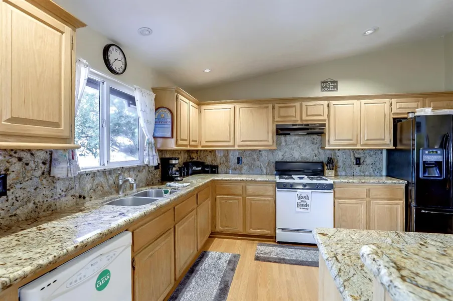 Wonderful 10 acres complete with updated main home that has 3 bedrooms, 2 full baths and wonderful open floorplan with attached 2 c garage and expansive covered back patio PLUS guest house built with permits in 2008 and has 1/1, is mostly furnished, open living area and w/500sq ft attached garage. Property is fenced, cross fenced and gated, paid for solar with avg true up$240/yr, RV garage w/ plug, chicken coop, hay shed, shelter for animals, generator, fruit trees, and just ready for new family to love!