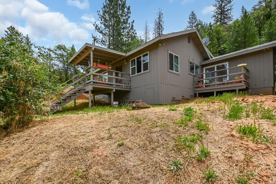 Incredible opportunities with this property! The 16 diverse acres features a turn key single story home 3/2 with a beautiful newer Ikea spacious kitchen that has it's own private deck for your herb garden. The covered front porch, high ceilings and formal entrance adds a comfortable charm to this mountain lifestyle. Seller had horses for many years with 2 arenas and there is a 4 stall Barn Master. This location provides endless trails (Daugherty Wild Life Area) to ride directly to or trail your horses to the many destination trails nearby. The Year Round Honcut Creek is across from the property, there are public access areas along the creek as well. The Bonus 2nd unit has many improvements but is unfinished inside but the possibilities are endless to finish it up as a 2nd home, ADU, Airbnb whatever your desires and visions. The covered parking structure offers additional storage above an...