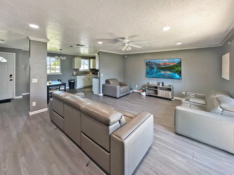 This home is a fantastic find! It's recent remodel with laminate flooring, new kitchen appliances and cabinets, and quartz counters in the bathrooms certainly adds value. The corner lot with RV access is a great feature, and being situated in a quiet neighborhood adjacent to the Edgewater. The spacious yard provides plenty of opportunities for landscaping customization, making it an ideal space for relaxation and outdoor activities.