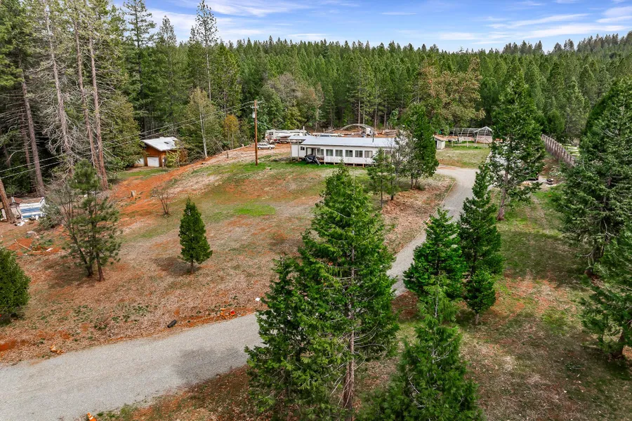 The owner, a General Engineering Contractor, has done tons of prep work on this 1.97-acre site nestled in a forest setting. A water meter, electric meter, and septic are all there and are currently hooked up to an RV (not included). Wow, thats rare! Landscape irrigation is piped around the whole parcel. The contractor designed this site for fire safety. For example, there are 6000-gallon water storage tanks. He removed the high fire danger trees and resculpted and fine-graded the property. The upper area has large level pads for a new home, barn, greenhouse, workshop, etc. He graveled the parking area and created a circular driveway large enough to accommodate 18-wheeler trucks. There is a black vinyl chain link fence on the eastern third of the property and another fence around the rest. The existing mobile home has been gutted to the studs. The pier and beam foundation is still in excellent condition. A well-built ramada protects the entire structure. A previous owner added it with a permit in 1976, along with porches front and rear. The seller obtained a permit for a new hot water heater and subfloor repair. The subfloor and all the plumbing underneath have been inspected and are up to code. This beautiful property is a blank slate just waiting for you. You will be glad that a seasoned professional has already completed all the hard work. Now, its ready for you to create your own vision! The terms are cash, or the seller will carry the loan with $28,000 down at 6% interest for 10 years. Payments would be $1,243.43 per month. The seller may also consider other terms. View by appointment only. To make an appointment, please email the listing agent who will give you the phone number for the caretaker.