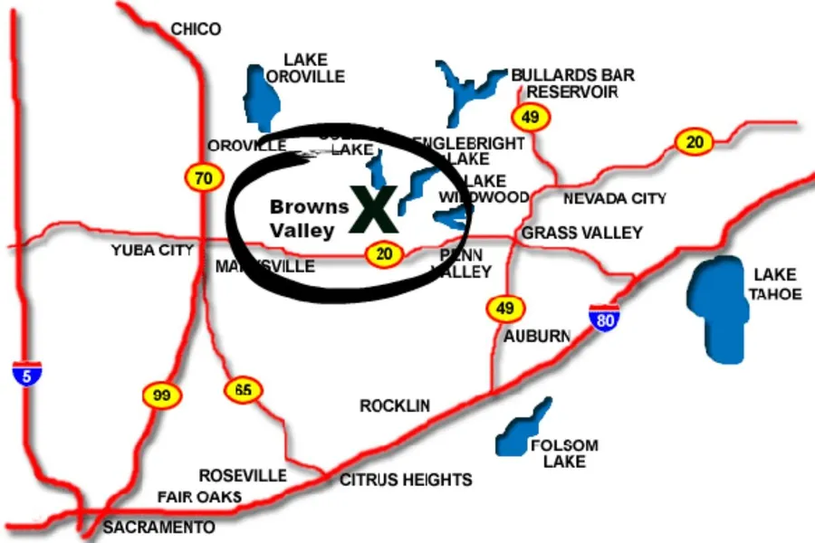 Driving Directions: From Yuba City take Hwy 20 Browns Valley Rd east. Turn left/north on Marysville Rd. Turn right on Dolan Harding Rd. Turn right on Redhill Rd. Turn right on Redhill Way. The parcel is ...